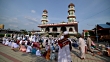 4 k-Zeitraffer-Film von Menschen zu Fuß außerhalb Moschee an Hari Raya Tag, Hatyai Thailand 2018