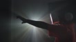 SLO MO. African American boy wearing Virtual Reality headset holds hand up into the light of a projector. - 4K Stock-Video
