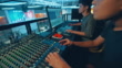 Asiatische Sport-Event-Crew, die hinter den Kulissen mit Bedienfeld an Bühnenbeleuchtung, Soundsystem und Lichteffekt arbeitet - 4K Stock-Video