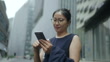 Beautiful Asian businesswoman using smart phone in the busy commercial district, dusk, the night view of the metropolis