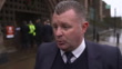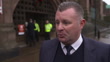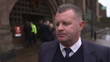 Former Everton footballer Graham Stuart is interviewed on the legacy of Bill Kenwright at his memorial service at Liverpool Cathedral - features quick GV of former Everton player Duncan Ferguson arriving for service.