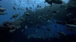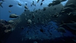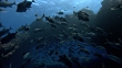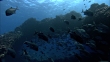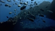 Black jacks (Caranx lugubris) swim under volcanic rock arch, Ascension Island - HD Stock-Video