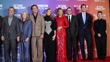 LONDON, ENGLAND - OCTOBER 14: (SLOW-MO) (L-R) Bradley Cooper, Mark Chappell, John Bishop, Melanie Bishop, Will Arnett, Laura Dern, Andra Day, Weston Middleton, Kris Thykier, and Kristy Matheson attend the "Is This Thing On?" Headline Gala at the 69th BFI London Film Festival at The Royal Festival Hall on October 14, 2025 in London, England. (Footage by Mark Case/Getty Images)