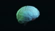 Brain Research Technology - 3D-gerenderte Animation. Scan-Hologramm-Effekt. MRT, SEM, TEM, Röntgenscan-Technologie im virtuellen Raum.Künstliche Intelligenz (KI) digitales Gehirnkonzept. Neuronale Netze, Big Data Deep Learning, Innovation, Animation des Denkprozesses.Ausblenden des Hauptobjekts auf dunklem Hintergrund.
