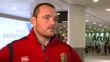 British and Irish Lions return to interviews with Ken Owens, John spencer and Sam Warburton; ENGLAND: London: Heathrow Airport:INTKen Owens (Hooker) interview SOT / GVs passengers through arrivals lounge at airport / players and team staff start coming through / John Spencer (Tour manager) interview SOT / GVs players along through airport / Tommy Seymour along / Maro Itoje along