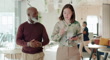 Geschäftsmann, Team und Gehen mit Tablet in der Diskussion für Planung, Strategie oder Verbesserung im Büro. Mann, Frau oder Kollegen sprechen oder erklären Ideen über Technologie für Innovation am Arbeitsplatz - 4K Stock-Video