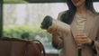 Vielbeschäftigte Geschäftsfrau, die einen Proteinshake zubereitet und Dinge in ihre Tasche packt, bevor sie sich auf den Weg zur Arbeit macht - 4K Stock-Video