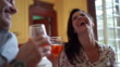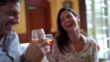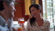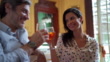Unbeschwertes Paar, das an einer Bar trinkt, während es spricht - 4K Stock-Video
