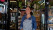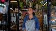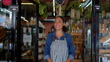 Fröhlicher Geschäftsinhaber einer Bio-Marktöffnung für Unternehmen - 4K Stock-Video