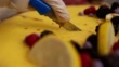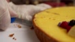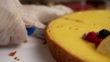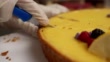 Chef schneidet Zitronenkuchen mit Früchten - 4K Stock-Video