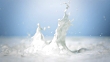 HD1080p: Super Slow Motion Aufnahme von Schokoriegeln und Erdbeeren, die in Milch spritzen. Aufgenommen mit 1050 fps.