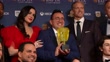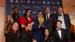 LONDON, ENGLAND - MARCH 30: Christopher Judge, Danielle Bisutti, Studio Animation Director, Sony Santa Monica, Bruno Velazquez, Adam J. Harrington, Sound design supervisor Michael Kent, (Front Row L-R) Supervising Dialogue Designer PlayStation, Jodie Kupsco, Eric Valdes, a guest and Sunny Suljic with the EE Game of The Year Award for 'God of War Ragnarök' during the 2023 BAFTA Games Awards at the Queen Elizabeth Hall on March 30, 2023 in London, England. (Footage by Mark Case/Getty Images)