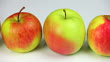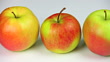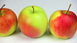 Nahaufnahme Dolly Shot von frischen Äpfeln auf weißem Grund. Aufgenommen mit LEICA Vario-Apo-Elmarit-R 70-180mm f/2.8 Objektiv.