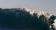 Close up of extremely powerful blue wave breaking in the open ocean over a shallow reef ledge. Filmed in 4x Slow Motion off the south west coast of Australia.