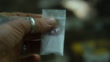 Mann hält in den Händen kleine Tüte mit Kokain. Videomaterial mit 4K-Auflösung.