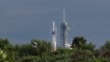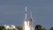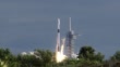 A daytime rocket launch carrying a commercial satellite payload clears the launch pad at the Kennedy Space Center