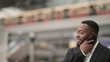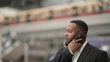 Confident bearded businessman talking while standing at airport terminal - 4K Stock-Video