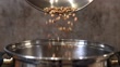 Cooking green lentils. Vegetarian food. Brazilian menu. Pour cereal into a bowl. Soybean