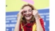 GIF: BERLIN, GERMANY - FEBRUARY 24: Corinne Masiero puts bottle caps in her eyes at the "Delete History" (Effacer l'historique) press conference during the 70th Berlinale International Film Festival Berlin at Grand Hyatt Hotel on February 24, 2020 in Berlin, Germany. (Photos by Matthias Nareyek/Getty Images)