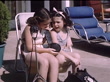 Lou Costello with his two daughters at home by the pool