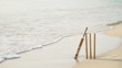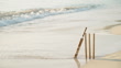 BRIDGETOWN, BARBADOS - APRIL 29: (SLOW-MO) A cricket bat resting on some stumps on a west coast beach on April 29, 2023 in Bridgetown, Barbados. (Footage by The Wright Archive/Popperfoto via Getty Images)