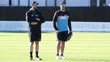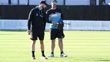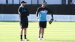 LINCOLN, NEW ZEALAND - MAY 03: (AUDIO OMITTED) Daryl Mitchell and Bowling Coach Shane Jurgensen (L-R) chat during a New Zealand training session at the New Zealand Cricket High Performance Centre on May 03, 2021 in Lincoln, New Zealand. (Footage by Kai Schwoerer/Getty Images)