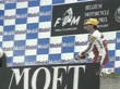 STAVELOT, BELGIUM - JULY 2: (AUDIO OMITTED) A delighted Jacques Cornu sprays champagne on the podium after winning the 250cc race, flanked by second placed Sito Pons (L) and third placed Carlos Cardús (R) at the Belgian Motorcycle Grand Prix at Circuit de Spa-Francorchamps on July 2, 1989 in Stavelot, Belgium. (Footage by Duke Video/Getty Images)