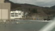 Destruction in Onagawa city, near Sendai Japan on 3rd April 2011; after tsunami following Tohuku earthquake of March 2011. Military vehicle drives through tidal flooding in Onagawa due to coastal area sinking after earthquake - HD Stock-Video