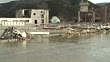 Destruction in Onagawa city, near Sendai Japan on 3rd April 2011; after tsunami following Tohuku earthquake of March 2011. Tidal flooding in Onagwa port due to coastal area sinking after earthquake - HD Stock-Video