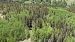 A dirt road winds through a valley in a Colorado forest. - HD Stock-Video