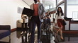 Eine vielfältige Gruppe von Geschäftsleuten, die durch ein Büro gehen.