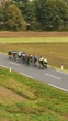 AERIAL Drone View of Group Of Athletes Riding Bicycles on Asphalt Road Amidst Rural Landscape During Autumn