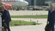 Various of members of England Football squad (blue suits) across tarmac and boarding aircraft - including Daniel Sturridge, Raheem Sterling, Jack Wilshere, Kyle Walker, Jordan Henderson, Danny Rose, Dele Alli, Eric Dyer, Jamie Vardy, Adam Lallana, Roy Hodgson (Manager) and Ray Lewington (Coach)/