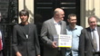 CLEAN: Exterior shots comedian,Dara O'Briain, Scientist Brian Cox & Dave Gorman carry boxes of petitions to the door of Number 10 Downing Street & pose for photo call. Central to the group's argument is the claim that current libel laws stifle open debate on important subjects like the benefits and possible pitfalls of new medical treatments and equipment. Libel Petition Delivered to Number 10 on June 27, 2012 in London, England (Footage by Sky News/Getty Images)