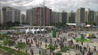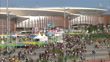 CLEAN: Exterior wide shots of people walking through the Olympic village, wide shots of Maracana stadium and the Olympic rings on August 12, 2016 in Rio de Janeiro, Brazil.