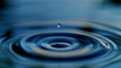 Extreme close up super slow motion droplet falling,rippling blue water surface
