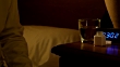 Aufnahmen von reifer Mann, die Einnahme von Schlafmitteln auf Nachttisch - HD Stock-Video