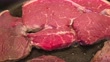 Frying large slices of rump steak in a frying pan close up - 4K Stock-Video