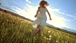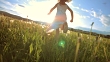 SUPER SLO-MO Mädchen Laufen In der Wiese bei Sonnenuntergang - HD Stock-Video