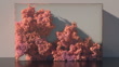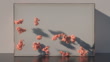 Glass cube getting filled with colorful balls