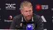 MANCHESTER, ENGLAND - MAY 11: Graham Potter, West Ham United manager, talks about Aaron Wan-Bissaka after a Premier League 2-0 victory over Manchester United during a press conference at Old Trafford on May 11, 2025 in Manchester, England. (Footage by Niche Sport Media via Getty Images)