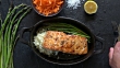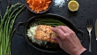 Gegrilltes Lachsfilet mit Spargel und Blumenkohl Reis. - 4K Stock-Video