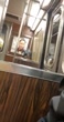 Guy riding the subway is wearing a brown jacket and a grey boba fett costume mask. (Footage by Collab via Getty Images UGC)