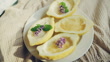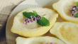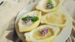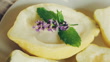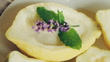 Half lemon ice cream/sweet cream decorated with lavender flowers. - 4K Stock-Video