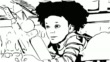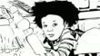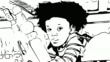 Handzeichnung, Doodle Cartoon-Stil, afroamerikanische Ethnizität kleinen Jungen spielen Spritzpistole