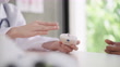 Hand des Arztes Treffen mit einem Patienten: Asiatische Frau junge Ärztin überprüft Zuckerblutspiegel der asiatischen Senior-Mann Patient trägt eine Hygiene-Gesichtsmaske und blaue Patiententuch, alte Mann hören, wie man sich mit Diabetes-Krankheit mi - 4K Stock-Video