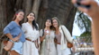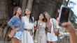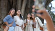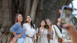 MS hand taking photo of girlfriends standing in front of famous tree - 4K Stock-Video