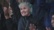 Happy multiracial male and female fans clapping while watching soccer match in stadium - 4K Stock-Video
