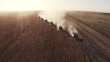Harvesting of corn crops on agriculture field shot from above.