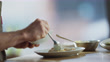 A head chef scoops pieces of tuna onto a plate while looking confident and calm - 4K Stock-Video